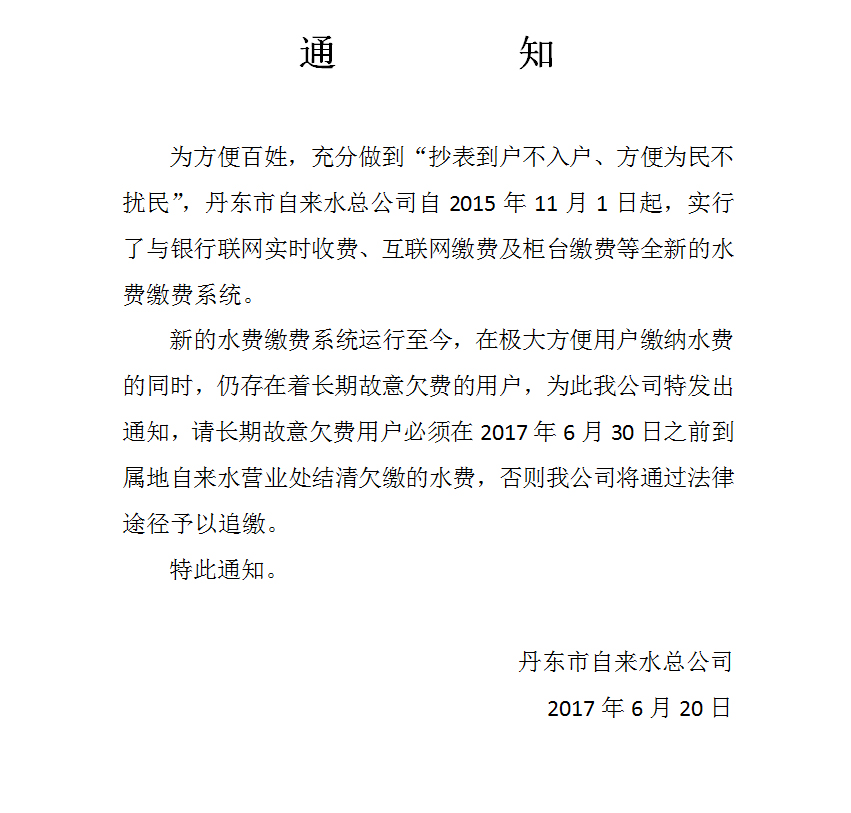 • 丹東市自來水總公司溫馨提示2017-08-06